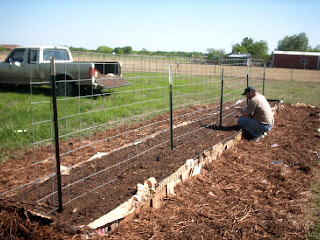 Ok so just above you see Tom my hubby putting in the cattle panels in the middle of our garden so the hanging crops can climb. The top picture is my attempt to try to do a little square foot gardening of course its 1 foot wide but across its going to be a bit more so I am dividing that too for the hanging crops.
